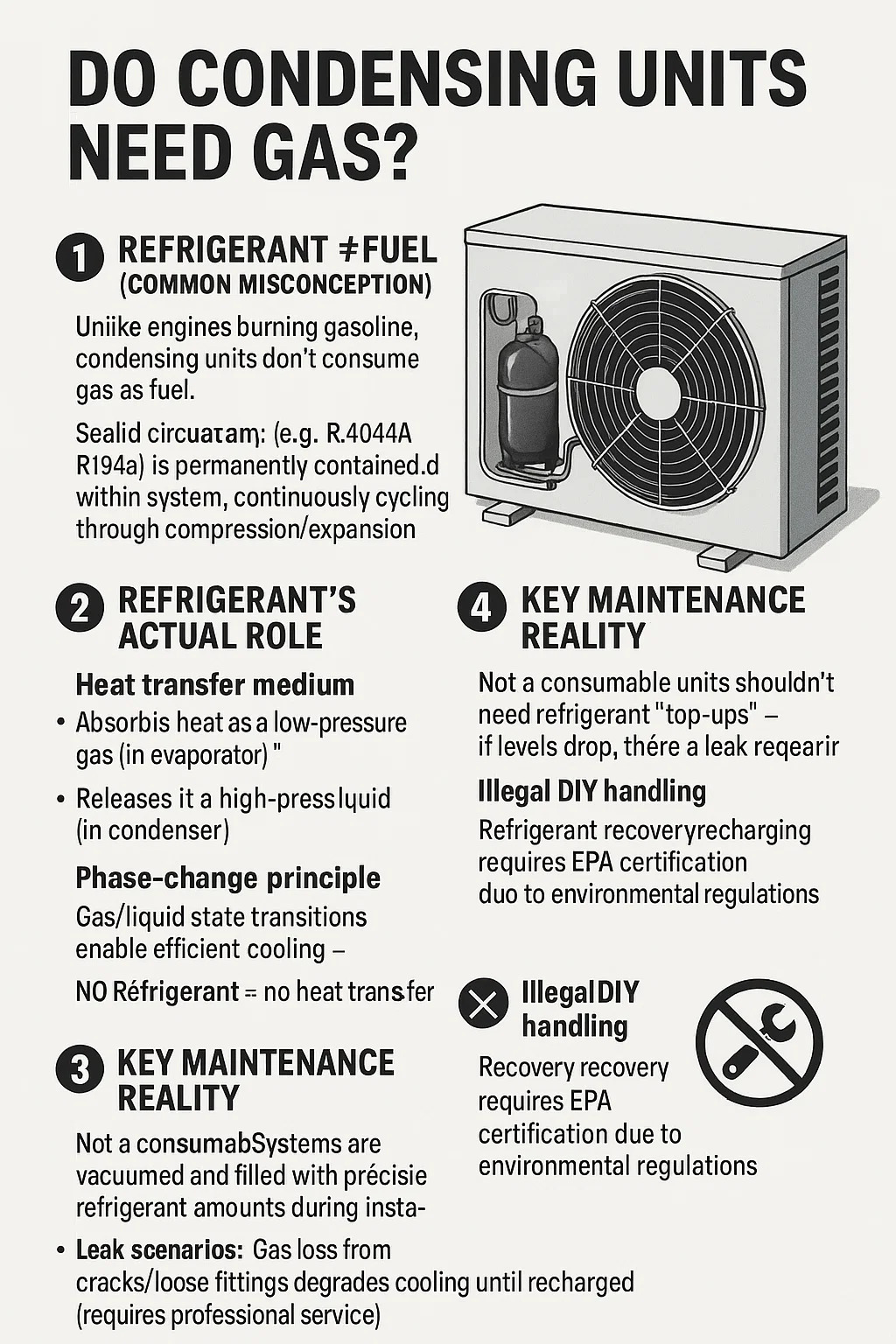 Nu, unități de condensare Ei ei înșiși nu „au nevoie de gaz” - dar circuitul lor de refrigerare necesită absolut gaz de refrigerare. Iată defalcarea critică: